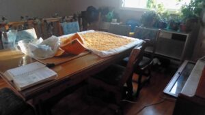 Découper la citrouille en petits dés et faire sécher sur un linge propre durant 1 à 2 jours.