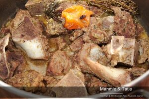- 2 livres de viande de boeuf (cou de préférence, mais cube de boeuf fait aussi très bien l’affaire)