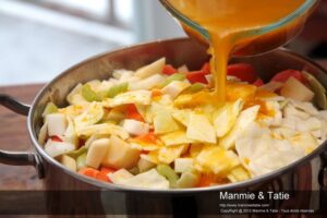 - 3 tasses de choux coupés grossièrement (couper en carrés d’approximativement 1 pouce par 1 pouce)